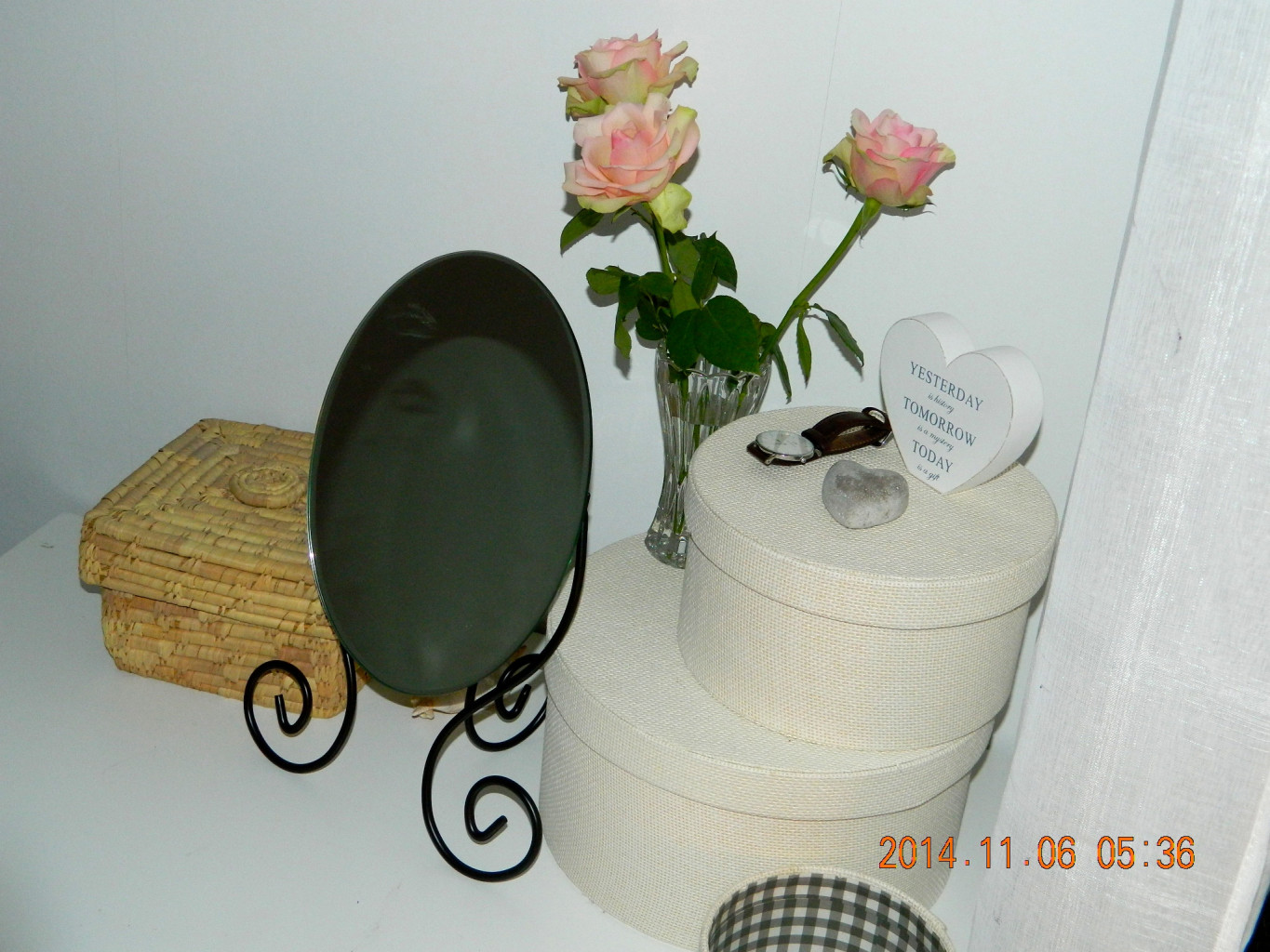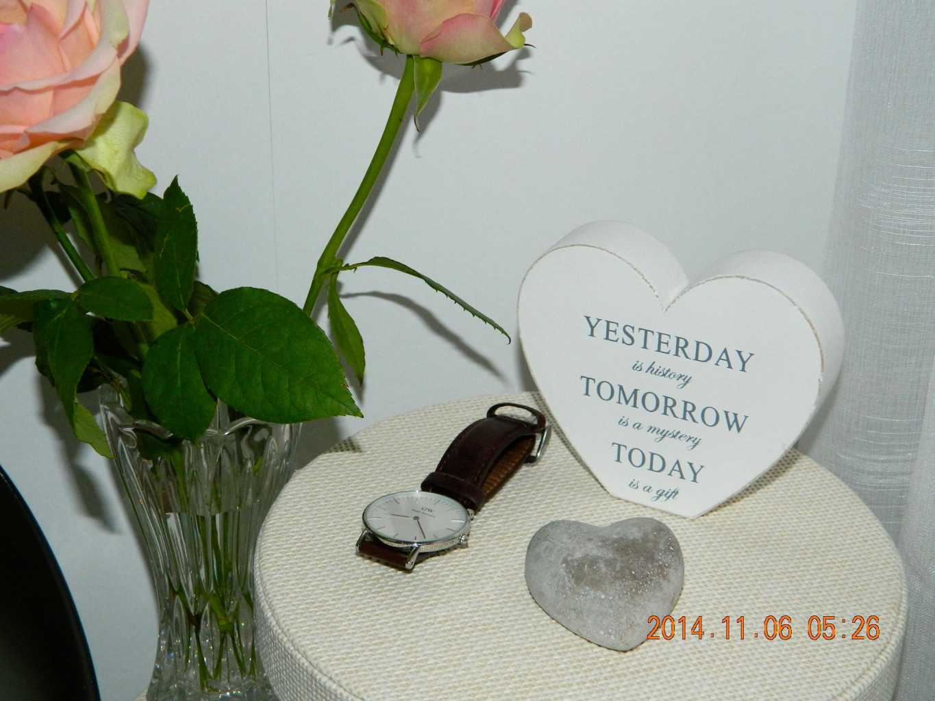 ”Fick med mig tre rosor hem från jobbet idag, mina favorit rosor i gammeldags rosa. Så fina i mitt rum!”