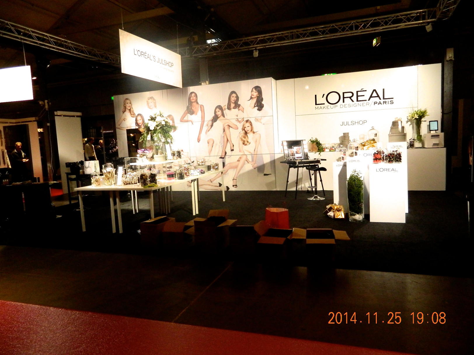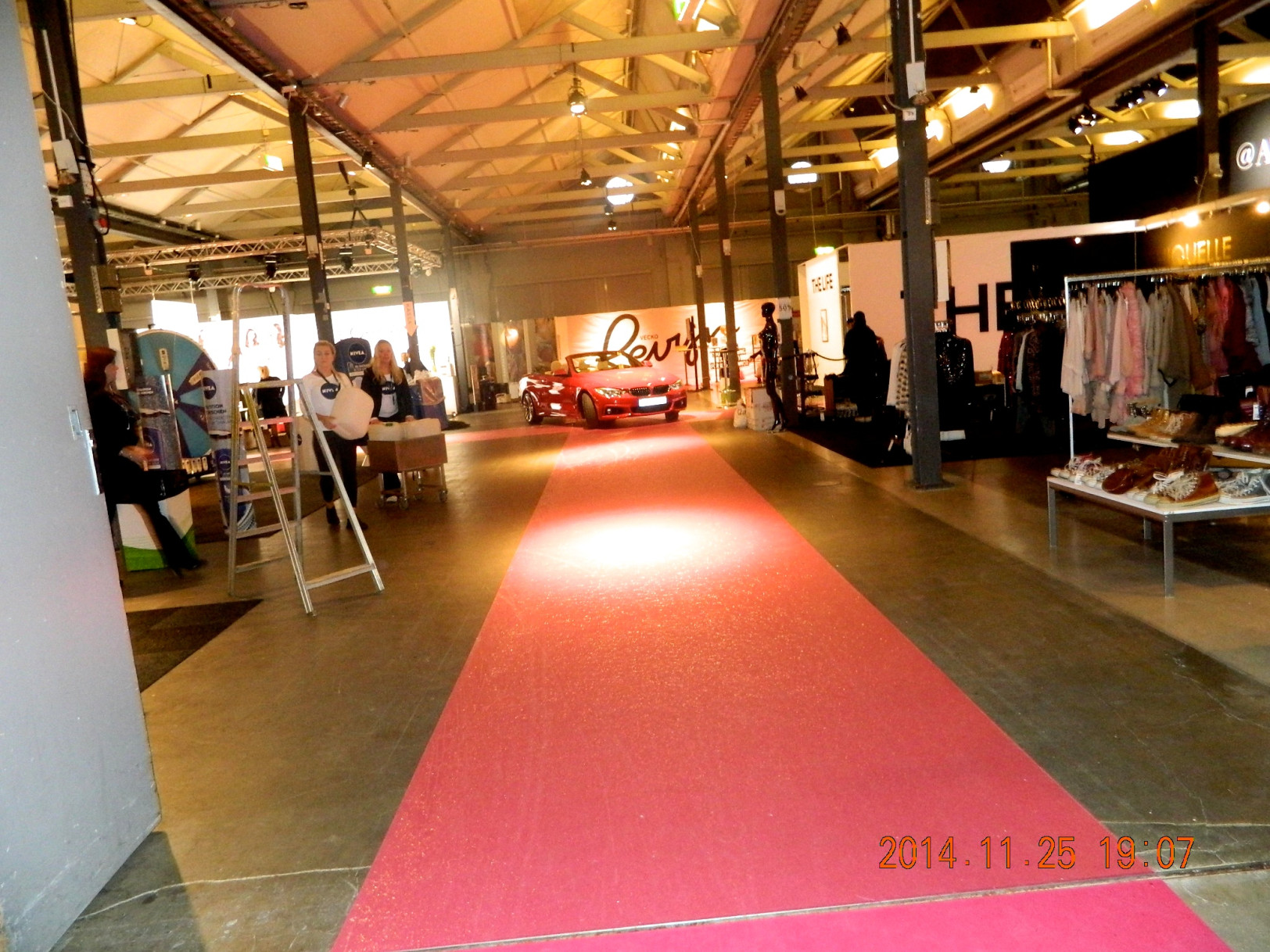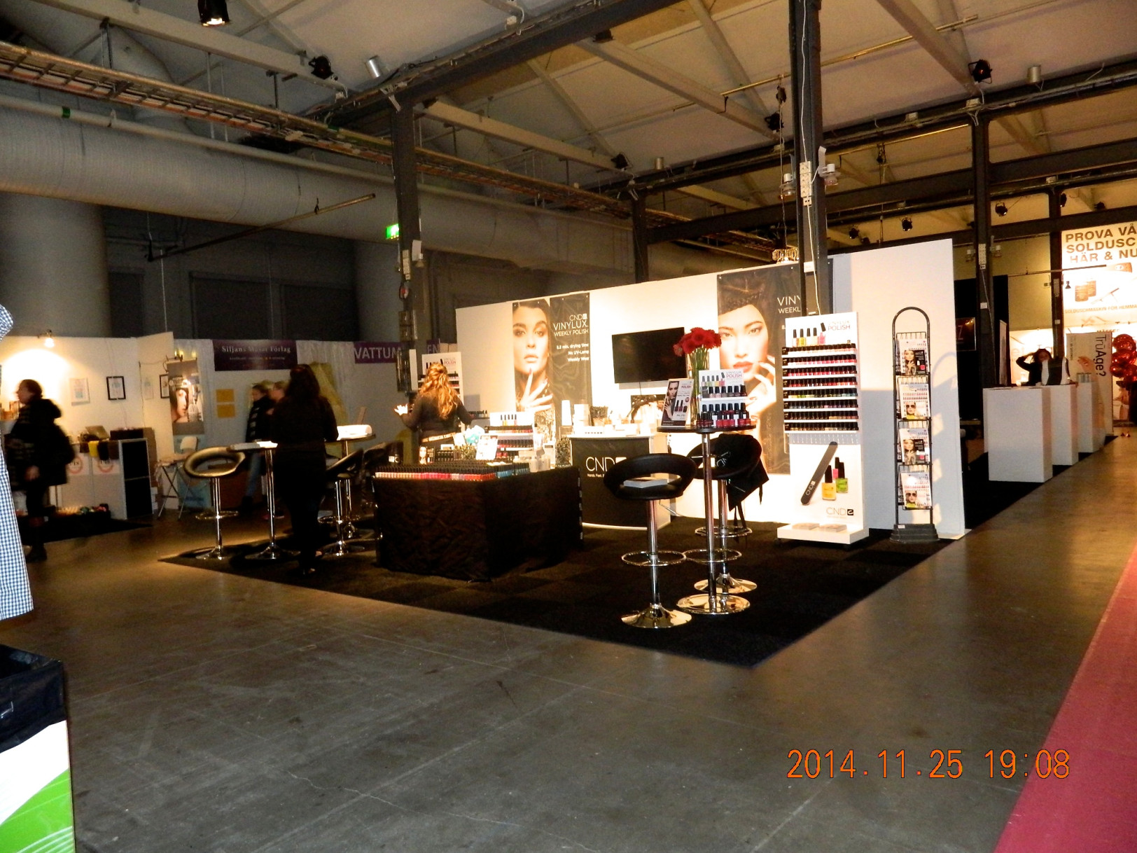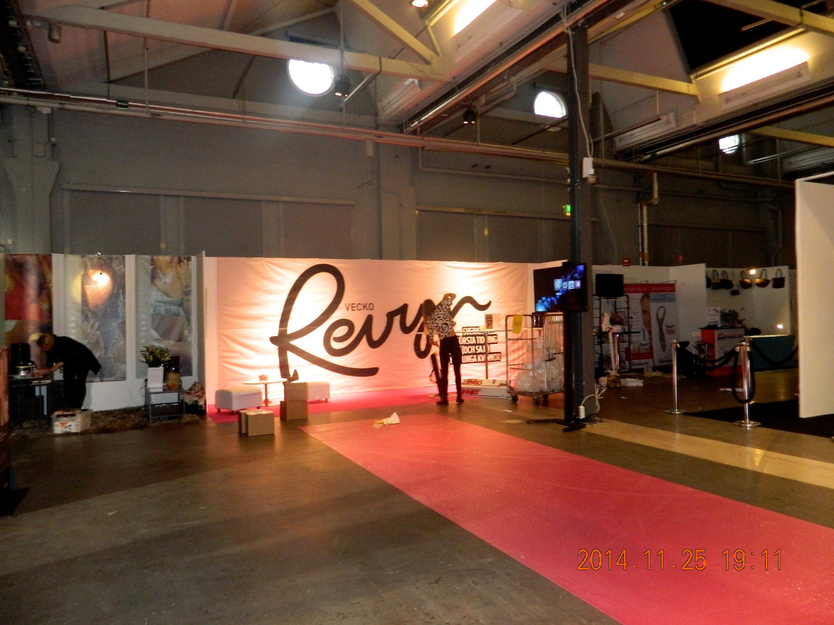 Mässan började vid 11 men vi kom in redan vid 8. Då höll det fortfarande på att förbereda och fixa allt. Stora scenen höll på att byggas upp, alla monter fixas. Riktigt kul att se, behind the scens typ. Erbjöd mig också att hjälpa till!