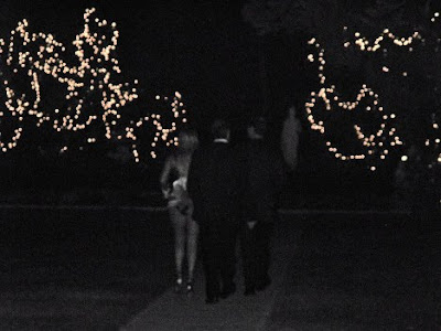 En typisk syn på Playboy Mansion, två gubbar i kostym och en naken tjej…..