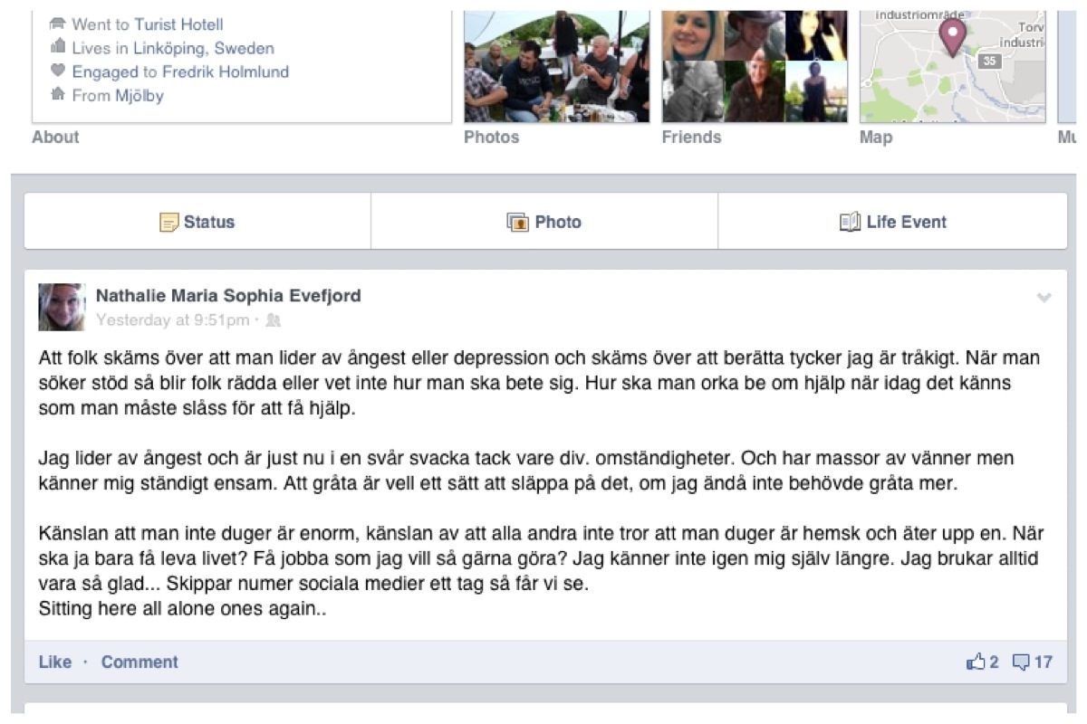 Dagen efter vaknar jag upp utvilad. Ser mig i spegeln och möts av svullna ögon. Spenderar dagen o soffan, går endast ut för att köpa lite mat. Dagen efter likadan, sitter hemma i lägenheten chockad och känslan av att vara deprimerad. Igår var det fredag och jag fick sådan extrem lust av att göra fint här hemma och handla på Ikea tills jag kommer på att jag måste ha bilen för att för att få med mig hem alla saker. Jag stelnar till och lägger mig i soffan igen. Under dagen så möblerar jag om och går till pizzerian och köper mat. Sen ligger jag ensam hemma och mår dåligt.