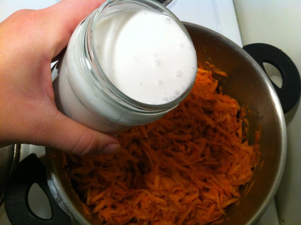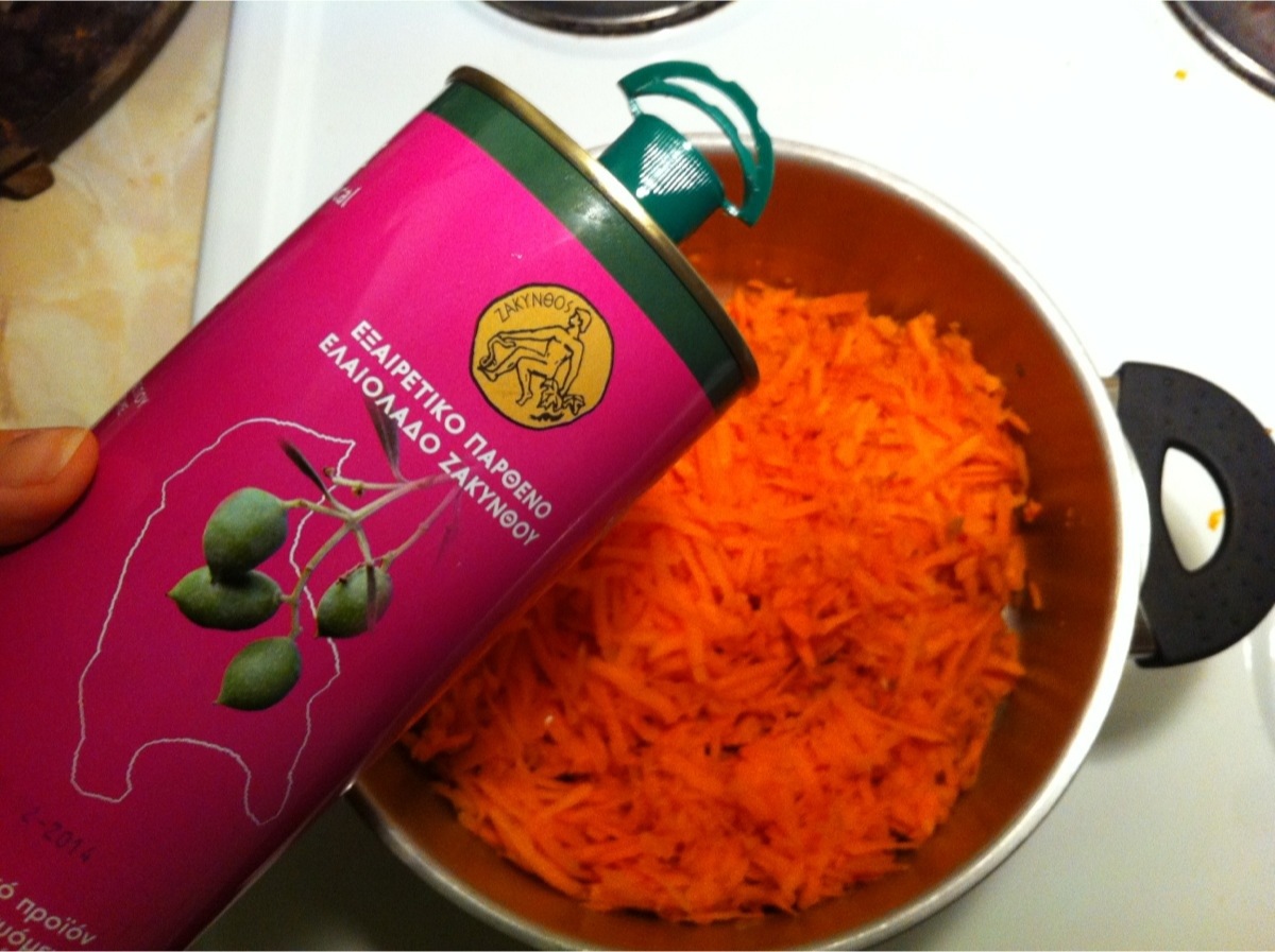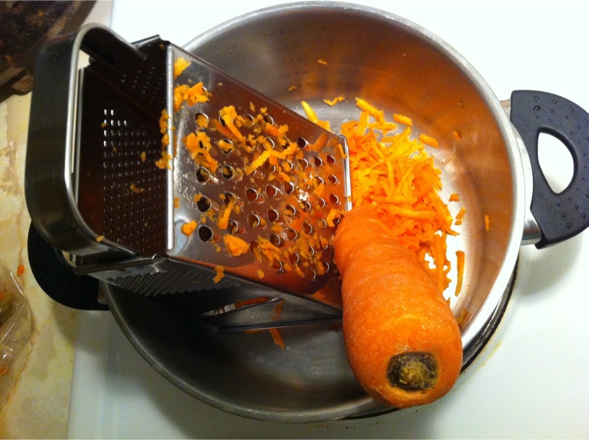Jag börjar med att riva morötter.