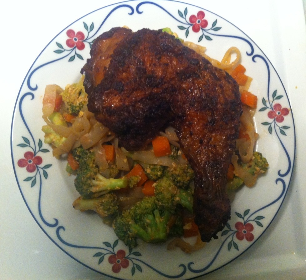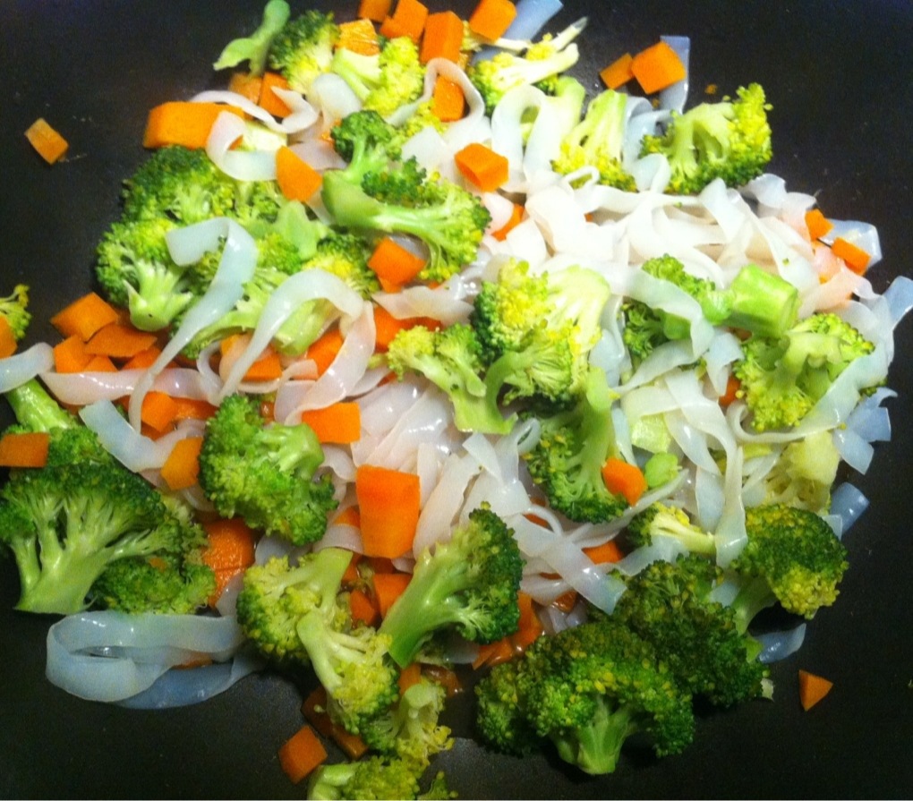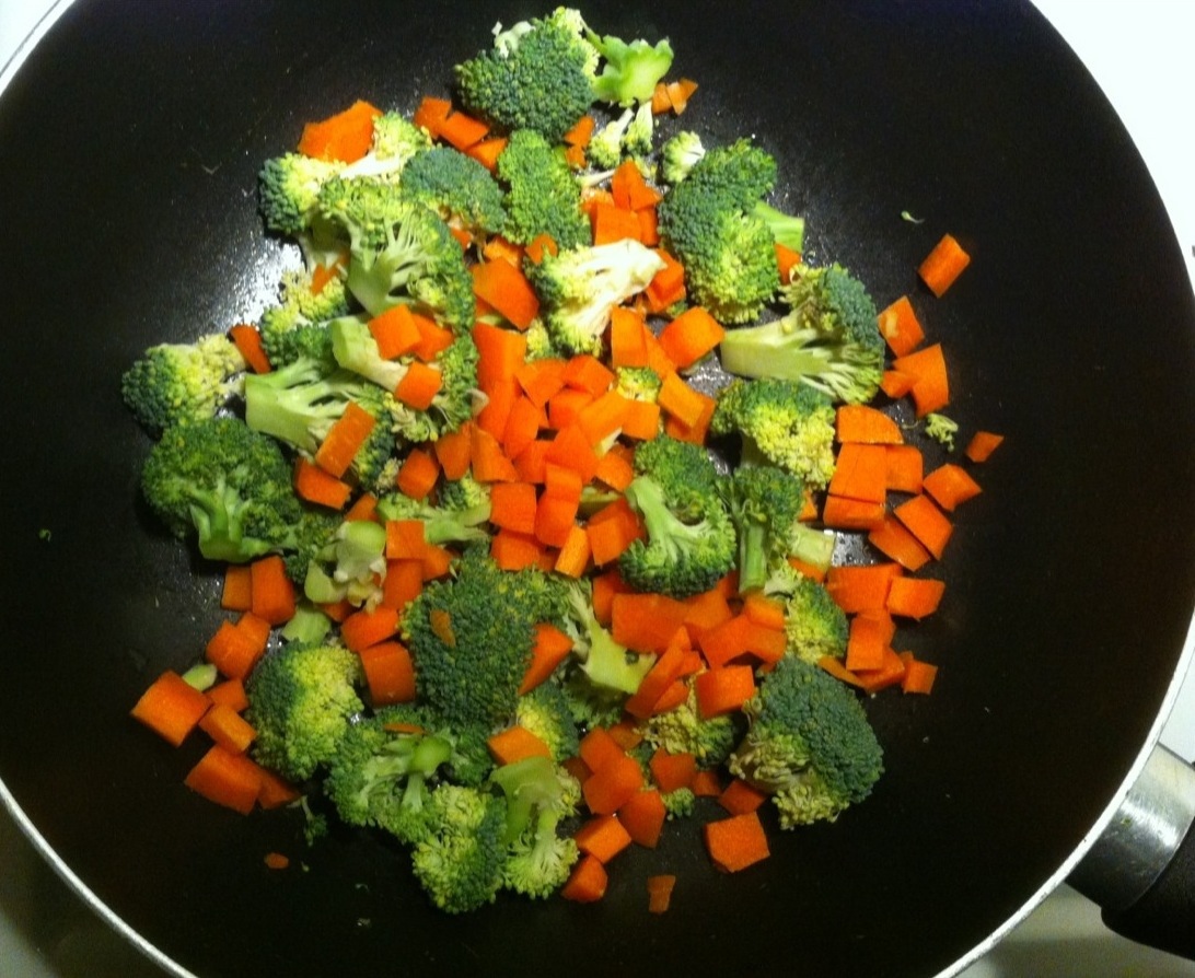 Jag gjorde en god wook, broccoli och morötter som jag först förvällde.