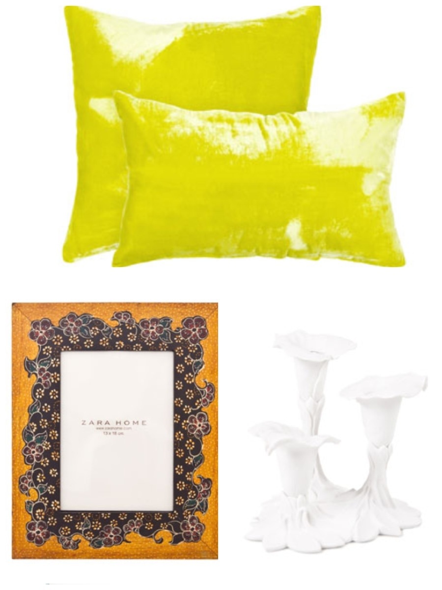 Pallarna och textilierna skulle jag placera i sovrummet, älskar gult och fjärilarna är ju för fina! Använda den lilla ”pallen” el bordet som ett sängbord med någon snygg växt på. Sen en gul salig blandning på sängen för att bidra med ljus och glädje. Fotoramen skulle passa bra på min bänk som är tänkt till vardagsrummet och ljusstaken i sovrummet. 🙂 Åååå vill köpa nu!