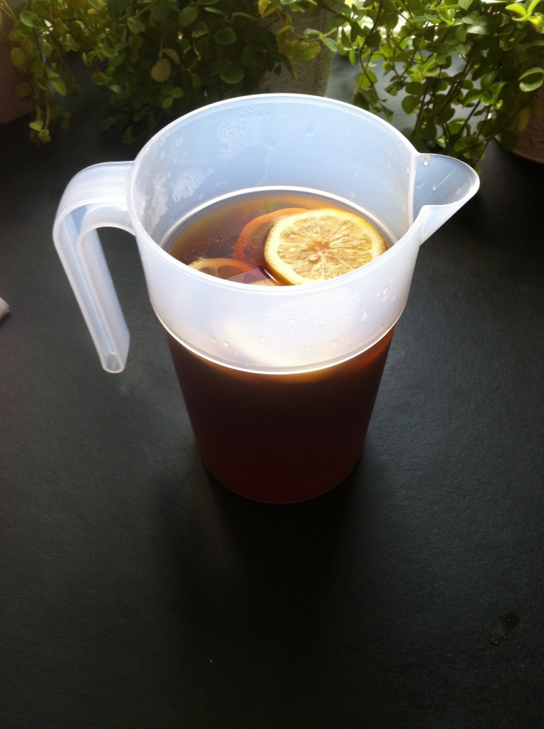Jag brygger iaf en hel kanna te som jag förvarar i kylen för att ta ett glas till frukosten. Ibland lägger jag i lite citron, men det håller sig fräshare längre utan citron i.