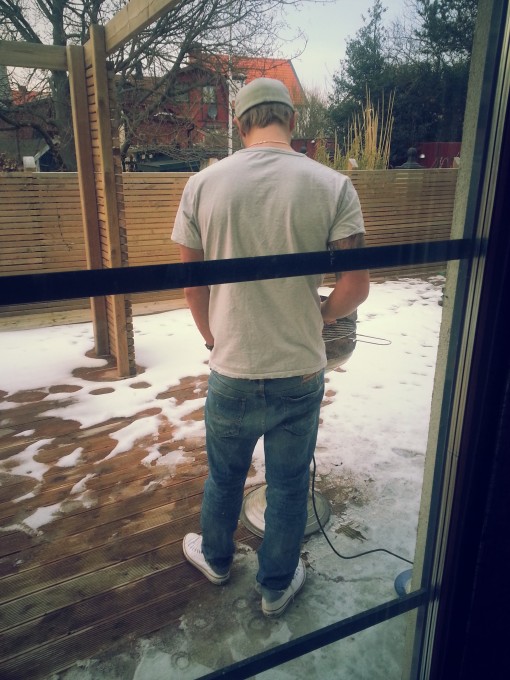 Sambon & jag åkte ut till föräldrarna för att grilla grillspett ikväll, åh så gott. Som ni ser ligger det fortfarande snö på baksidan av huset medan det på framsidan inte finns ett spår av snö och kyla, har ju varit strålande sol de senaste dagarna, 30grader på terassen där det inte blåser det minsta och solen bara steker. Älskar att vara ute hos föräldrarna nu när våren och sommaren börjar kika fram, eftersom de bor ända nere vid stranden!