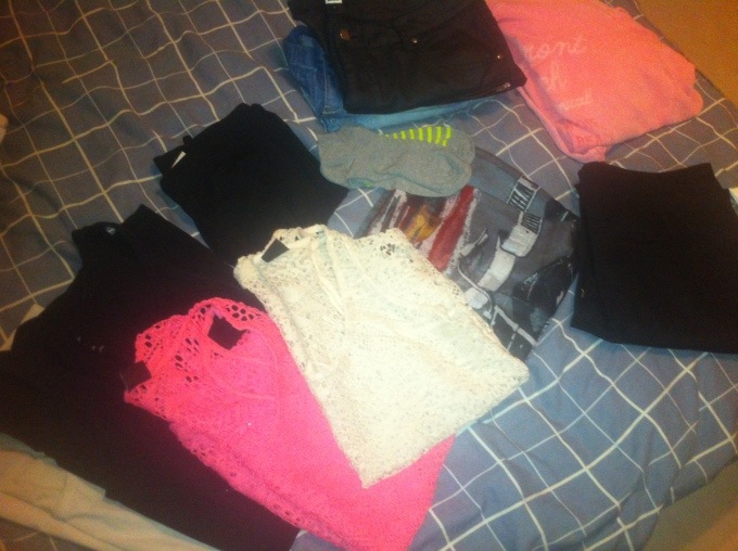 Packar inför helgens bloggevent 11 sep 2012 av pixxxie Tänkte det e lika bra att ha det gjort.. Dock e jag inte klar än men fortsätter i morgon.. Hellre för mycket kläder med mig än för lite.. 🙂