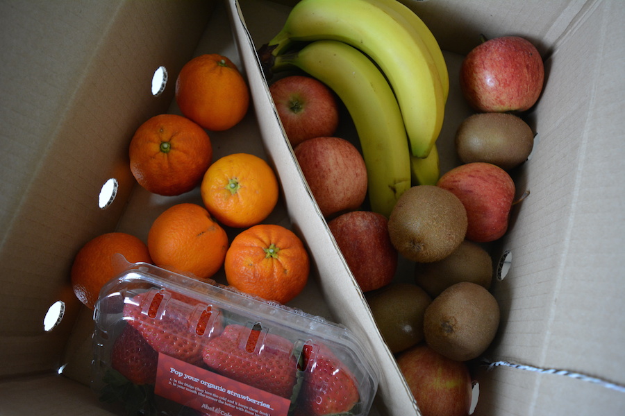 Åh vilken slapp dag. Vaknade sent och räknade ut att jag sovit 12 timmar – hur ens? Jag har ju varit så slapp och trött hela veckan, vet inte vad det är med mig! Men bestämde mig för att ändra min diet lite. Ibland kan det vara så enkelt som det. Och just i tid till min nya diet så fick jag min fruktbox levererad imorse. Jag beställer från Able & Cole varje vecka nu. Det är ett företag som skickar ekologiska och närodlade produkter hem till dörren. Förra veckan beställde jag en grönsakslåda och denna gången blev det frukt. Köpte också lite burgare och korvar och tofu (allt veganskt såklart) Dieten som jag ska köra på nu heter ”Ani’s 15 day fat blast” som är 100% raw och innehåller många smoothies, så fruktboxen passade ju perfekt.