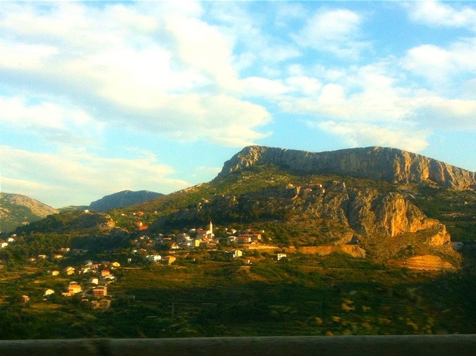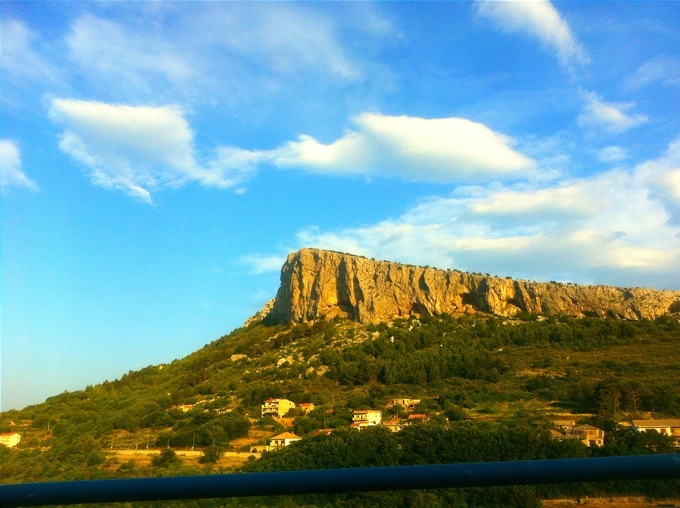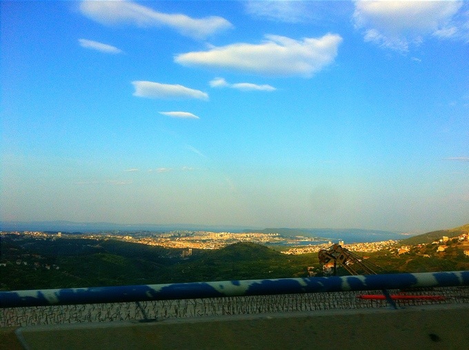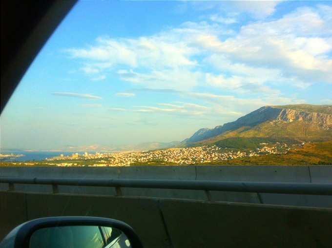 Nu är vi alldeles straxt framme vid vårt slutmål. Äntligen! Split är ju inte staden vi ska bo i men ca. 2 mil härifrån har vi vårt boende så vi är i mål kan man säga! Titta hur fint det är när Split visar sig långt där nere. Vi är fortfarande högt uppe i bergen och man bjuds på en otrolig utsikt som entré till staden. Vi är dock väldigt tidiga så tänkte sätta oss på nått fik och käka frukost innan vi åker bort mot lägenheten. Lovar att visa er den också såklart!