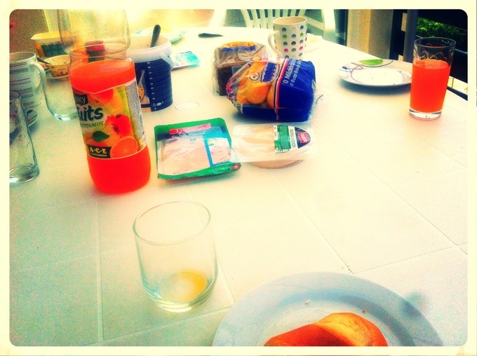 Kickar igång andra dagen här nere med lite frukost på terrassen. Lika härligt och varmt väder idag, så blir några timmar på stranden nu efter vi ätit. Ikväll åker vi nog in till Split eller Omis och äter middag. Hur har ni det i Sverige? Regn, sol eller kanske snö? 😉