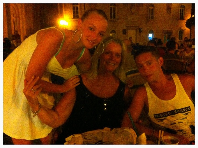 Avslutar kvällen i Trogir med en uppfriskande drink. Slog oss ner på ett stort torg eller vad man ska kalla det med en massa stolar och bord. Och runt omkring oss återigen gamla byggnader, samt katedralen. Inte så tokigt va? Kolla in sugrören vi fick till drinkarna! Inte så dumma dom heller va? Haha! 😉 Nu ska vi hem och sova. I morgon tänkte vi åka och kolla in en annan strand än den vi har här hos oss. Brela Punta Rata hette den och ska tydligen vara känd för sitt kristallklara vatten. Upp till bevis säger jag.. 😉