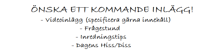 Ja nu tyckte jag det var dags att ni får bestämma lite över vad ni vill läsa eller se här på bloggen. Kolla nedan och välj något (eller flera) av alternativen så får vi se om något dyker upp här i dagarna. Puss!