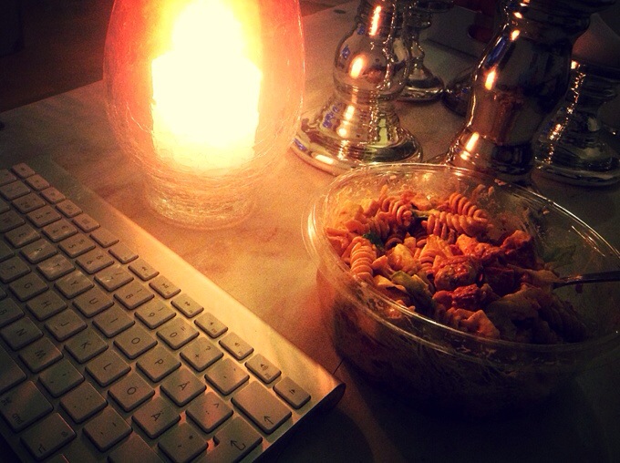 Hemma från en minst sagt intensiv dag på jobb. Hujedamig vad Måndagar alltid verkar vara dagen då precis alla vaknar till liv? Jag är så trött och slut i huvudet nu, så efter en liten quick fix i köket med disk osv. har jag slagit mig ner framför tvn med en köpt sallad. Ja, ni kan ju glömma att jag ställer mig och lagar mat en dag som denna! Rocky är sällskapet för kvällen… 😉
