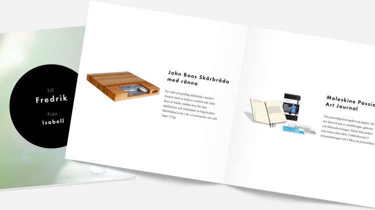 2. Ge bort en presentkollektion. Må vara en av dom smartaste julklapparna jag sett? Har du svårt att komma på vad du ska köpa så har du den ultimata presenten här. Här ska man alltså välja ut 10st olika produkter i ett prisintervall mellan 250kr – 10000kr, och så presenteras dom sen i en personlig presentbok som man själv designar. Mottagaren får sedan välja vilken av dessa 10 presenter hen vill ha. Sjukt bra, inte sant? Funderar själv på att klicka hem den faktiskt..