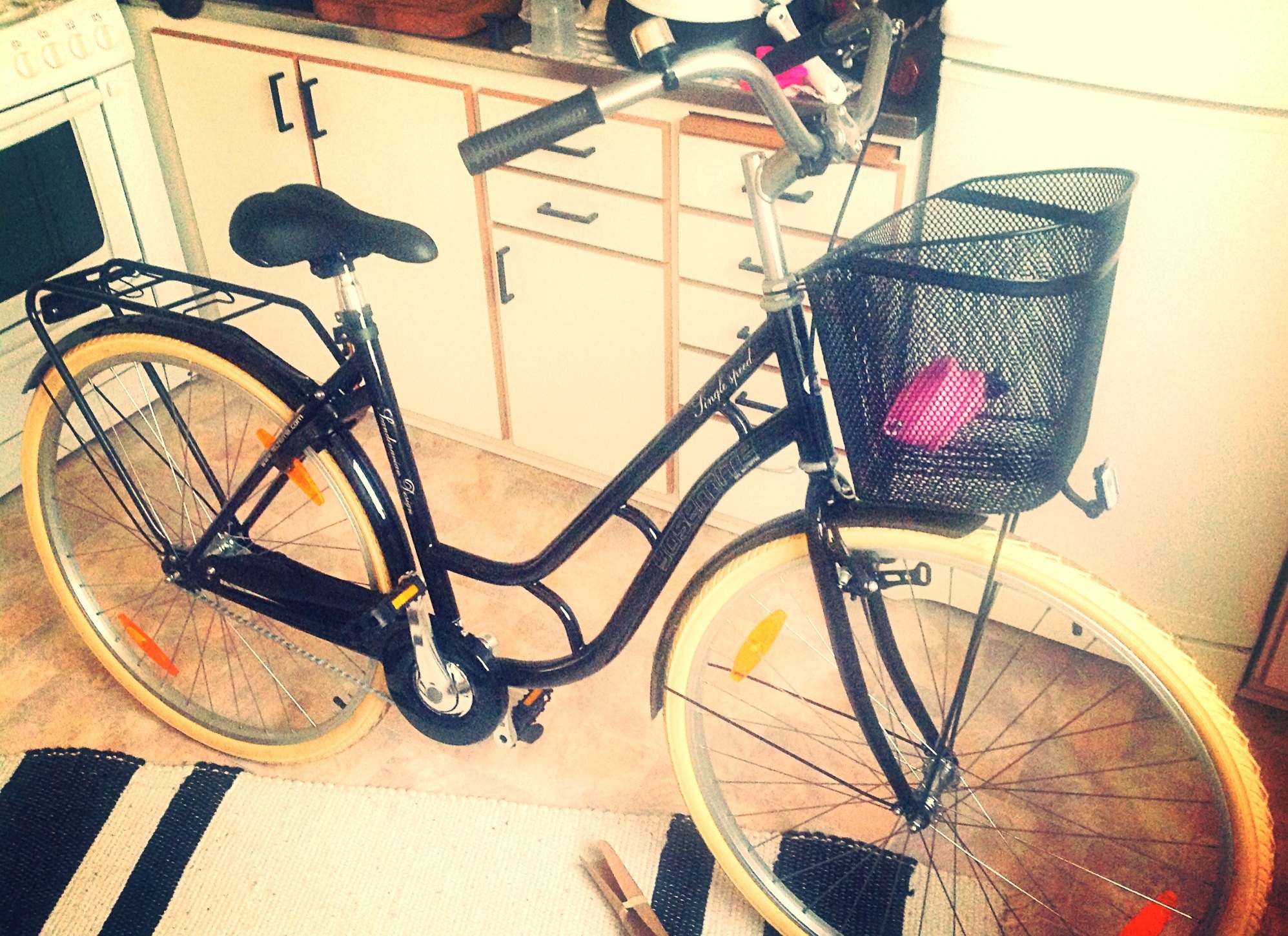 Idag väcktes jag av en skönsjungande sambo och frukost på sängen. Eller på soffan var det faktiskt som vi har börjat sova på igen (aj aj, inte bra). Därefter väntade en present i köket. Jaha det räckte inte med svindyra Efva Attling ringen tänkte jag? Här har älskling, tillsammans med svärmor, gått och köpt en sprillans ny cykel till mig! Det var ju precis vad jag behövde så vilken as bra present?! Ny kan jag återigen börja ”motionera” till jobbet, förhoppningsvis bli av med lite hängröv och få tillbaka lite förlorad kondis. Tack!