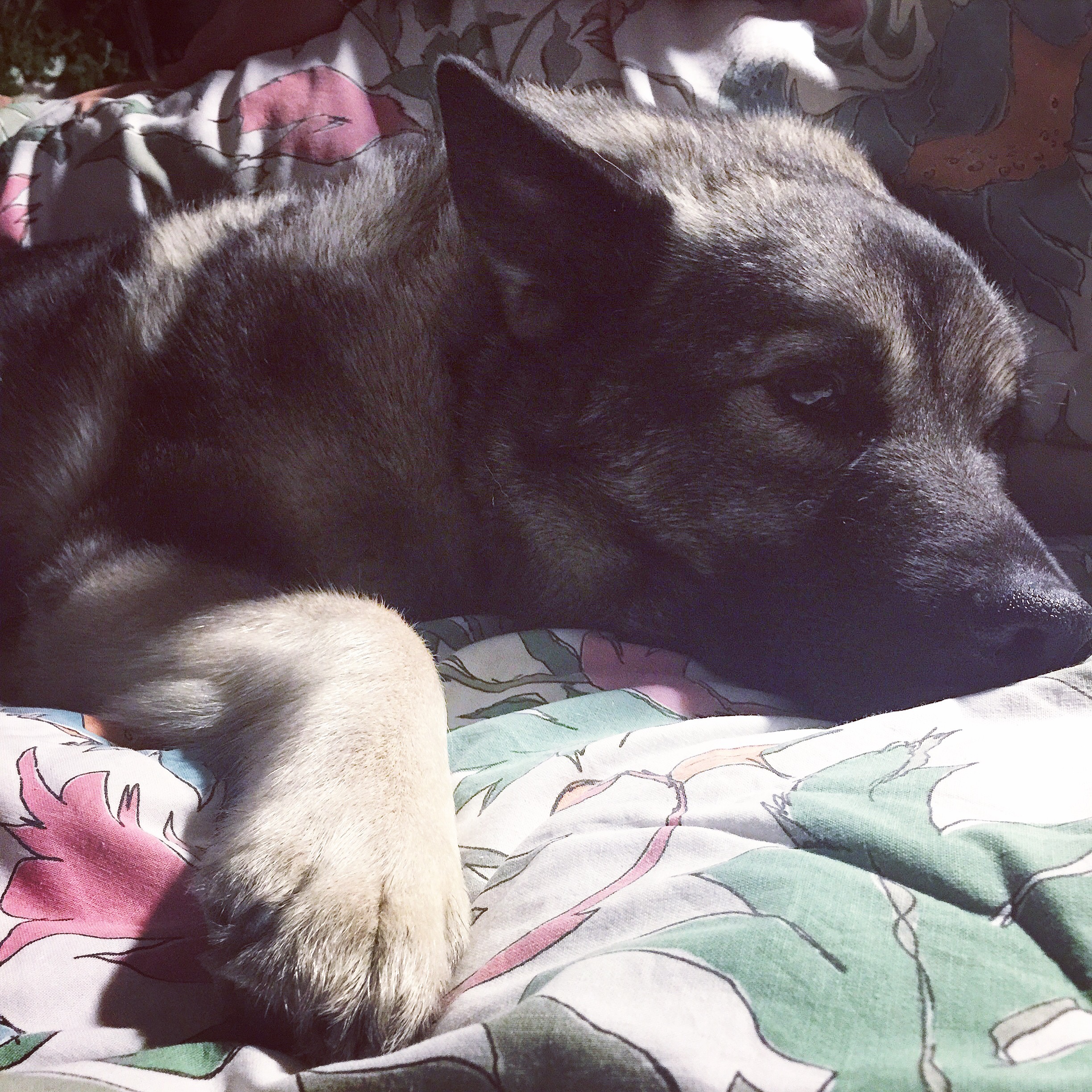 Har haft nattligt besök i natt. I form av en något större hund än vanligt. Våra tre är ju annars som denna vargs huvud tillsammans i princip, så då förstår ni kanske storleksskillnaden. Men visst var det mysigt. Väldigt mysigt! Lite annorlunda dock med känslan av att det ligger en hel extra person mellan mig och sambon och snarkar. Haha!