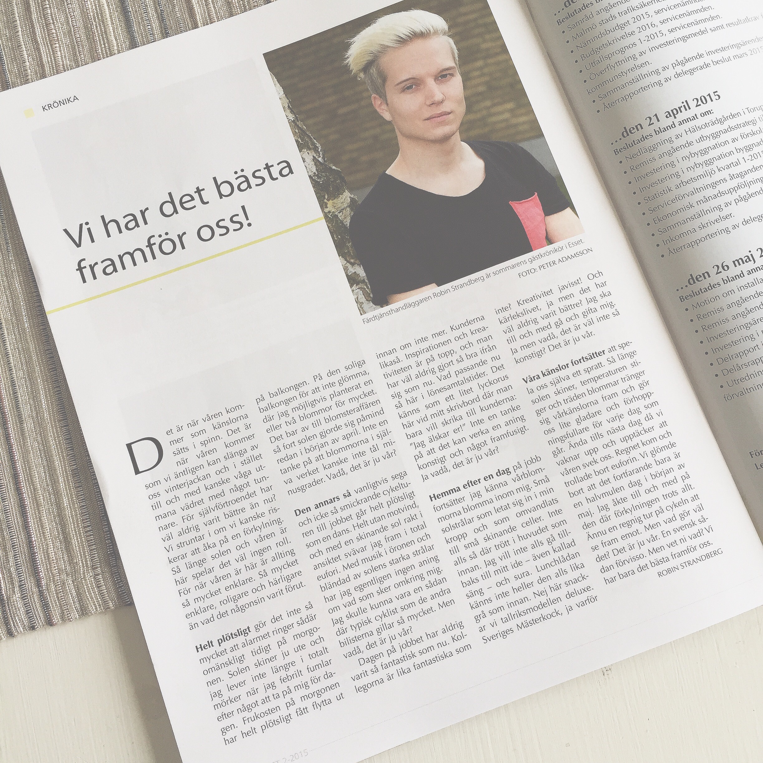 En annan sak. Jag fick skriva en gästkrönika i tidningen ESSET härförleden. Kul! Nu har den kommit, så varsågod. Där har ni kvällens godnatt saga till ert förfogande. Nu ska jag fortsätta bleka sönder håret, käka pizza och avsluta säsong tre av Orange is the new black. Förbannat bra kväll. Och serie.