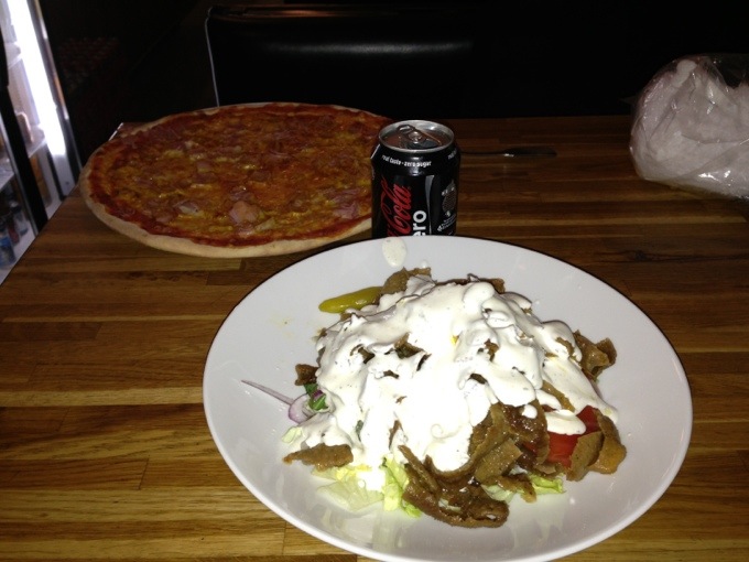 Jag är helt slut efter denna dag och sitter just nu på Angelos med Aucan i matkoma. Unnade mig en kebabsallad 🙂