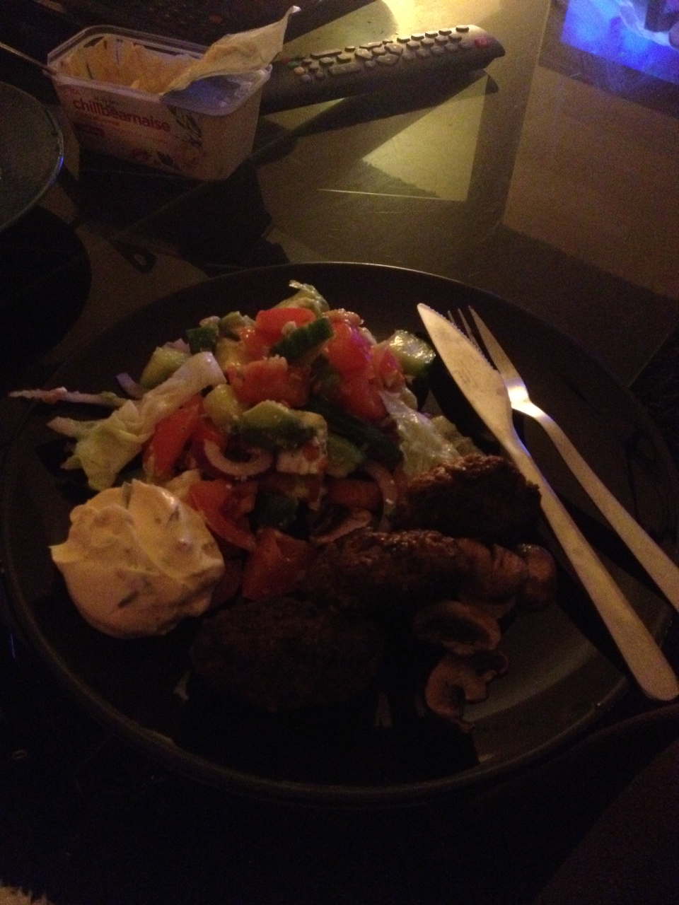Jag lagade cevappccicis(?) med sallad och bea medans grisarna satt och bloggade. Det är lixom alltid jag som får laga maten bland mina vänner. Det är typ förbestämt utan att någon frågat. Men är man bäst så är man 😉