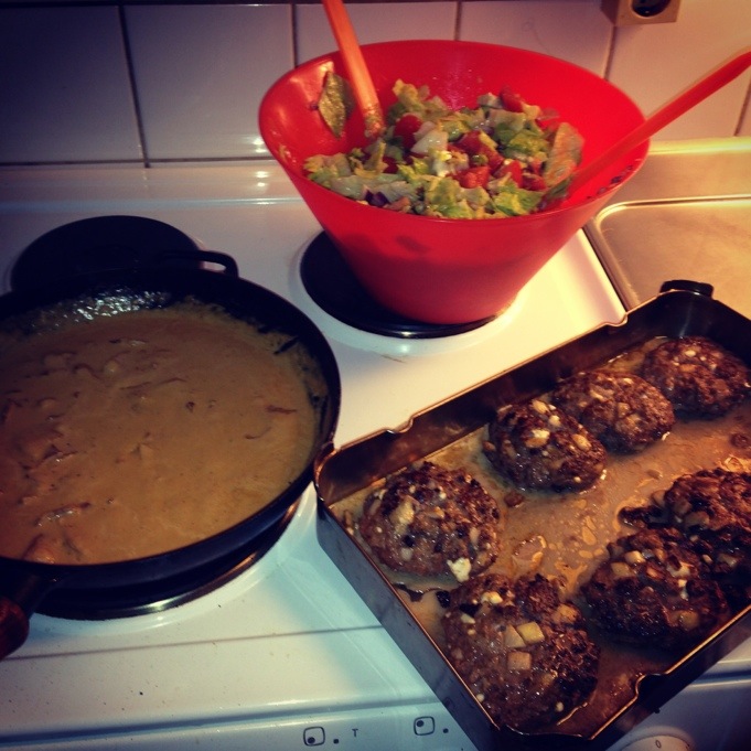 Ikväll blev det fetaost biffar med sallad och baconsås (för den som är extra grisig).