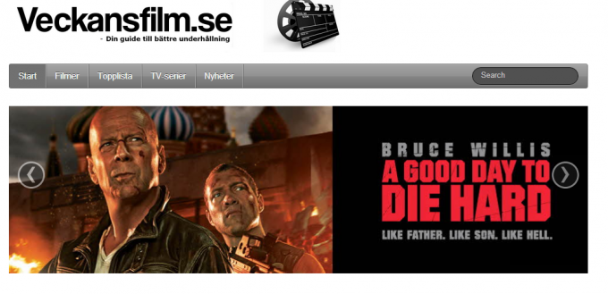 Eftersom att jag legat inne hela dagen och betat av den ena filmen efter den andra tänkte jag att man lika gärna kunde avsluta kvällen med en tung bio. Hamnade på en hemsida som heter veckansfilm.se – där hjälper de dig att hitta de bästa filmerna som går just nu på bio, tv och som finns tillgängliga på piratebay.