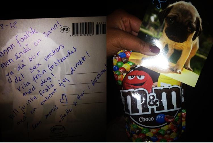Världens bästa Mona gav mig ett gulligt kort och massa godis <3 Det var min tur att uppvakta henne tillbaka nu efter bilolyckan!