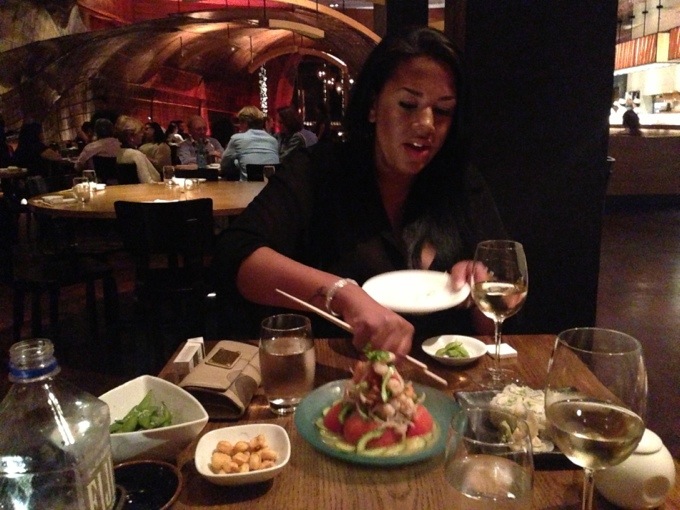 Igår var vi på middag inne i Atlantis. Det blev Nobu som är ett japanskt ställe. Jag älskar ju sushi så det var en självklarhet att dra dit. Mickis hatar rå fisk så hon åt bara en risotto mesans jag gick loss på allt möjligt. Meral tipsade om deras Shrimp Rock som är en sallad med scampi och citron typ. Supergod! Sushin ska vi inte ens tala om. Matorgasm på hög nivå haha!