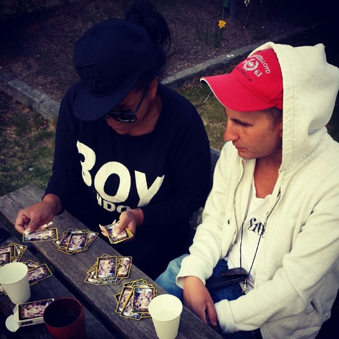 Istället kom Amir, Douglas och Imen över för lite kortspel och filmkväll! Vi satt ute nyss men det började blåsa som fan så vi fortsatte spelet uppe hos oss!