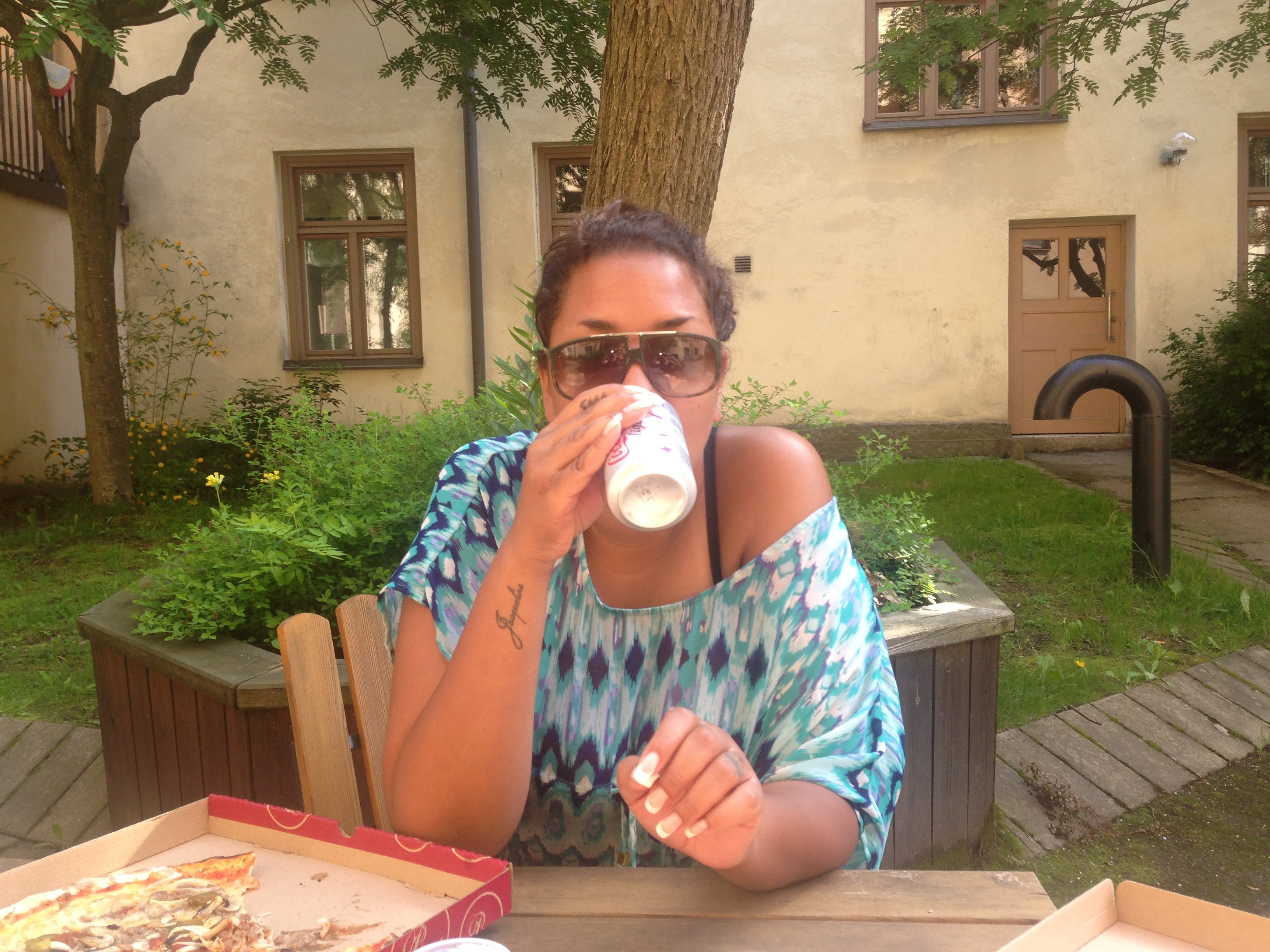 Vi sitter på mammas mysiga gård och käkar lunch ute i solen. Vädret är underbart idag!