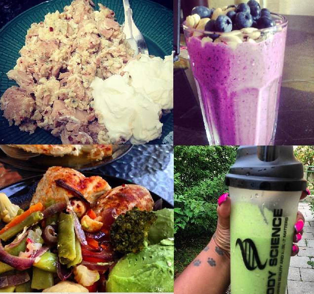 Fredag 9/8 – frukost – 2 fullkornsbröd med äggröra och kvarg med bär, linfrön och nötter. Lunch – äggröra med tonfisk. Middag – kvarg med bär.