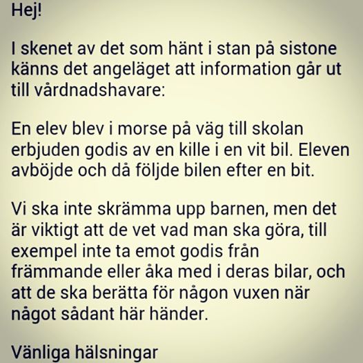 12 Mars 2015 12 mar 2015 av Vall Sabina Kul med ett sånthär mail från skolans rektor… Nackskott på sånnhär vidriga människor som försöker komma åt barn, ush!!