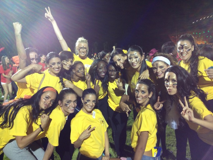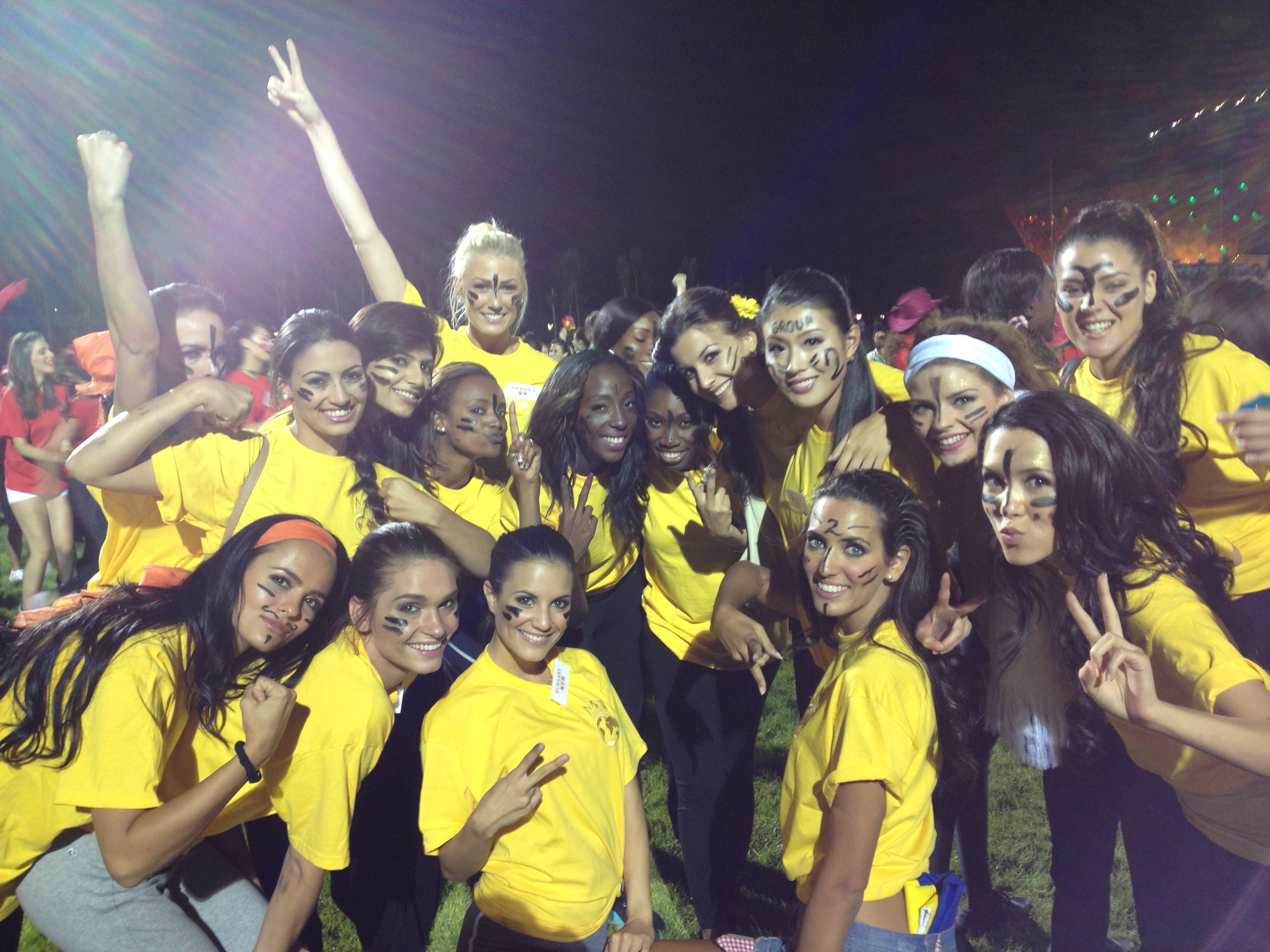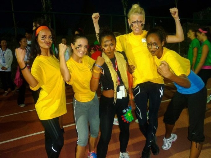 Det hela började med ett fitnesstest där de kollade våran styrka och uthållighet, vi gjorde armhävningar, step-up, sit-ups mm och det var otroligt jobbigt. Allting filmades så tänk er att ha en kamera i ansiktet när ni gör sit-ups, måste blivit fina ansiktsuttryck… De 6 med bäst resultat från varje grupp gick vidare och jag var en utav dom vilket gjorde mig otroligt glad. Samma kväll som vi fick reda på resultatet så var de dags för tävlingen. Vi fick på oss våra lagtröjor, våran färg var gul, vi gjorde krigsmålning och vi övade in lagsånger sen var vi redo för sport eventet. Tävlingen började med längdhopp där vi fick två hopp var. Mitt första hopp var helt okej där jag hoppade runt 3.70 meter. Mitt andra hopp var ungefär det samma. Men jag var inte så super nöjd eftersom jag vet att jag kan hoppa bättre egentligen för mitt tidigare rekord som liten var 4.80 meter…Men jag kom iallefall två efter England. Men vi fortsatte till nästa momemt, fotbollsstraffar. Där gjorde jag mål på alla straffar och blev delad vinnare tillsammans med Uganda. Sen var det dags för att springa 100 meter. Där gick det undan. Jag vann mitt hit men tyvärr räckte det inte och jag kom inte på någon pallplats. Sen körde vi två stycken staffetter och där vann mitt lag den sista!!