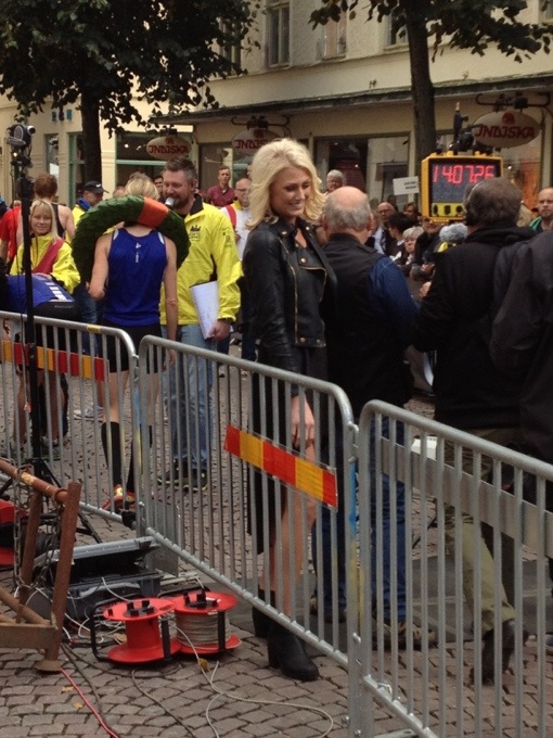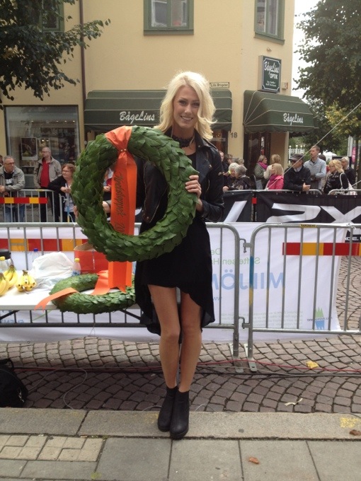 Så där, nu är jag påväg hem ifrån stan där jag var kranskulla! Jag kan ju säga att jag har fått mer respekt för kranskullor nu, för de va faktiskt rejält svårt! Först skulle jag lägga kransen över vinnaren i herrklassen, och han kom i en judrans fart så han bara grabbade tag i kransen och så joggade jag efter in i mål! Sen var det dags för damklassen, och när jag skulle ge henne kransen så ville hon inte ha den så det var bara för mig att jogga efter och ge henne den bakom mål! Jag kan ju säga att jag hade klackar och klänning på mig så det måste sett lite halvdumt ut när jag sprang men men! Nu är det gjort i allefall och jag är jätteglad att jag fick möjlighet att göra detta!