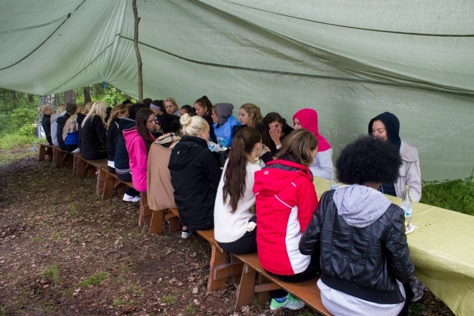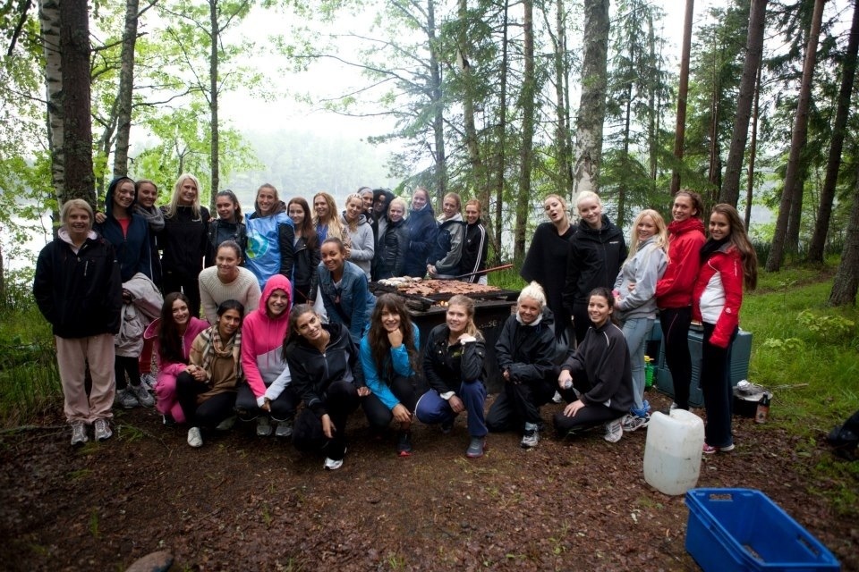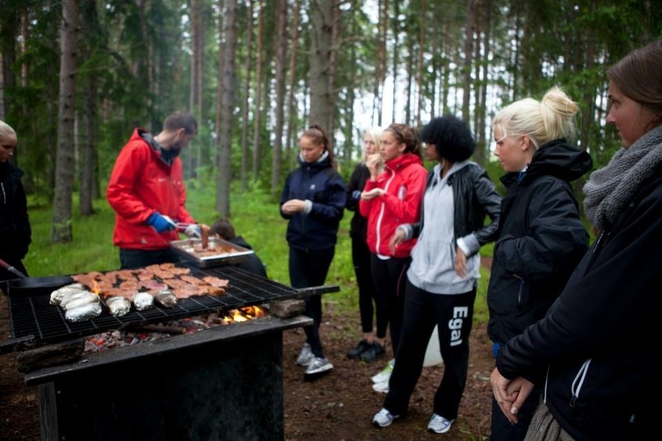 Vad är ett camp utan att campa? Så vi när vi skulle ge oss iväg så spöregnade, underbart… Men vi höll oss på gott humör och gav oss ut ändå. Vi paddlade kanot ut till där vi skulle spendera natten. Vi fick kasta yxa, skjuta pilbåge och andra roliga aktiviteter. Det fanns två tält så vi delade upp oss och gjorde oss hemmastadda. Problemet var att för att hålla värmen så skulle vi sköta kaminen och fick vara eldvakter i skift. Haha detta gick inte så bra för vårt tält, jag vaknade mitt i natten av att hela tältet var fullt med rök. Sen struntade vi i elden, ingen av oss visste hur vi skulle fixa det. Haha kaos.