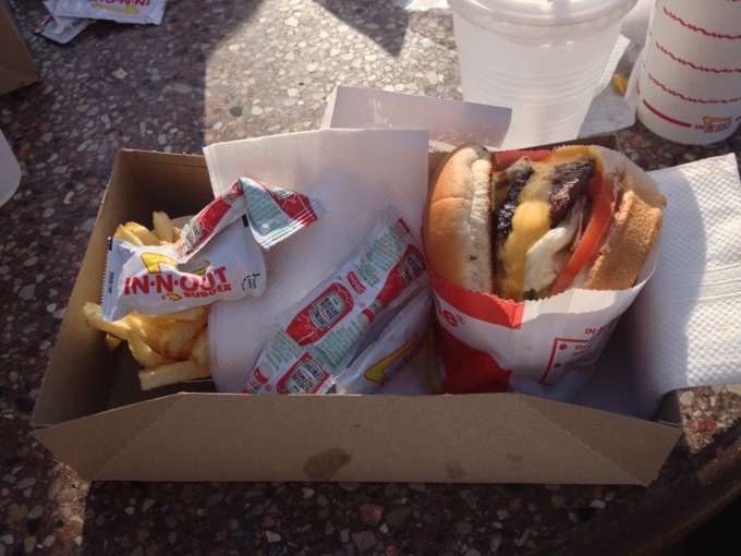 Sen åkte vi och syndade…. vi åkte till ett hamburgeställe, där kunde man beställa hur stora hamburgare man ville, man kunde få med 1 -4 hamburgare i en burgare, så amerikanskt, ska alltid överdriva 😉 jag tog iaf en dubbel och de var alldeles lagom!