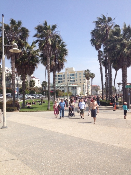 Idag så hade jag inte så mycket att göra så jag tog bussen ner till Santa Monica beach och gick sedan på strandpromenaden till Venice beach! Det var fullt med folk överallt som njöt av det vackra vädret och av söndagen. Det är detta jag gillar med USA, här så hittar folk på saker på söndagarna, hemma i Sverige så ligger vi mest inomhus och kollar tv! Och här så stöter man på så mycket konstiga människor. Går inte riktigt att förklara, man måste nog vara här för att förstå. Men det är iaf väldigt underhållande att bara gå runt för man stöter alltid på någon skummis! Det var massa olika dansuppvisningar längs gatan vid venice beach så där gick jag runt och kollade en stund.