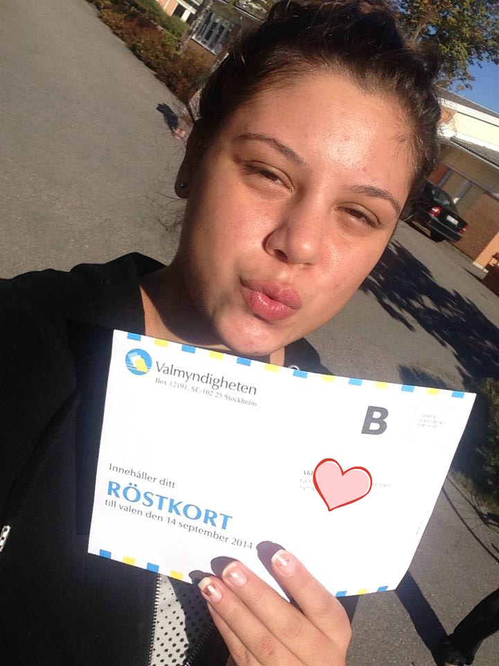 Osminkad och med solen i ögonen gick jag och röstade. Det här är mitt första riksdagsval (jag var 16 valet 2010) och vallokalen var min gamla högstadieskola. Det kändes häftigt att komma tillbaka, 4 år senare, och få lägga min säkra röst. Jag har varit med i SSU sedan jag var 16 och fick fördjupa mig i de olika partierna på gymnasiet. Dessutom fick jag personrösta på Mattias Kristenson, min bästa kompis Moas barndomsvän och min bekant. Stort!