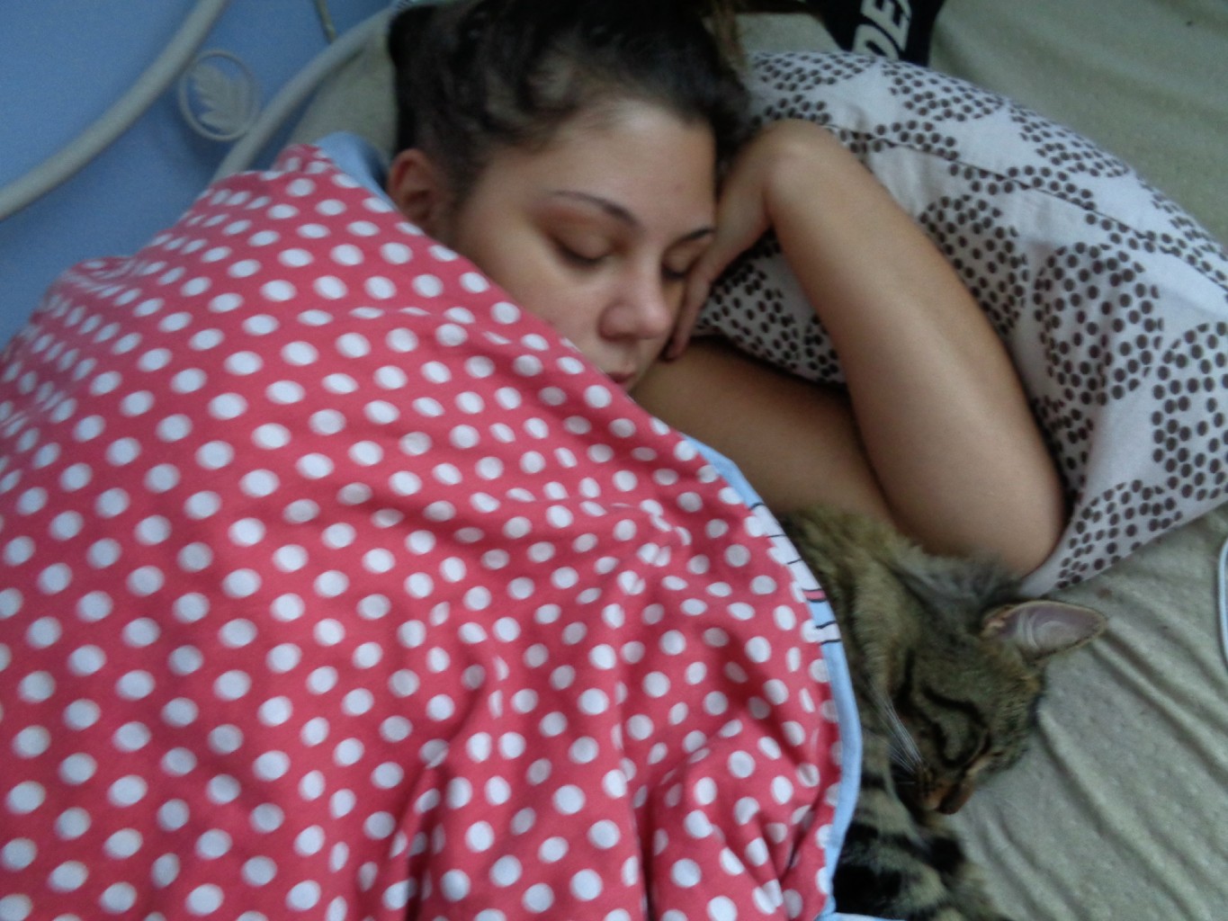 Såhär kan det se ut när jag och Frasse tar en nap under dagen. Vi båda ligger under täcket och gosar och sen slocknar vi. Ni som undrar varför jag sover utan lakan så är det för att jag sover som en galning, alltså rör jag mig väldigt mycket och lakanet ligger liksom aldrig kvar. Jag har testat alla slags lakan men alla ligger halvt på golvet när jag vaknar på morgonen. Och jag är en sån som är för lat att bädda varje dag hehe. Nån som har något förslag på hur man ska få lakanet att stanna på plats?