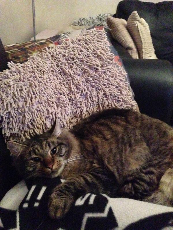 Hej på er! Haft en lugn dag som inte var så händelserik. Har varvat med att sova och att kolla på Chicago Fire. Har känt mig lite som Frasse på bilderna, nyvaken och dann. Min bebis är verkligen den bästa katten på jorden och jag kan verkligen inte tänka mig en dag utan honom! Anyway så Har jag börjat planera lite inför min uppkommande England-tripp och ska se om jag kanske kan åka tidigare än planerat. Ska bli superkul och jag berättar mer om det när allt är bokat och klart! 🙂