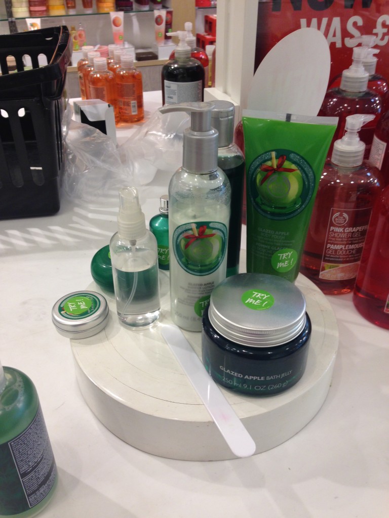 Eftersom jag haft tid över så har jag sprungit omkring på Birminghams shopping-gata samt the Bullring som är en stoooor galleria. Klev in i The Body Shop och blev bemött av dessa godingar. Det är deras nya jullukt ”Glazed Apple” som luktar så sjuuuuuuuuuuukt gott. Den luktar nästan godare än vad ett glaserat äpple gör i verkligheten…!