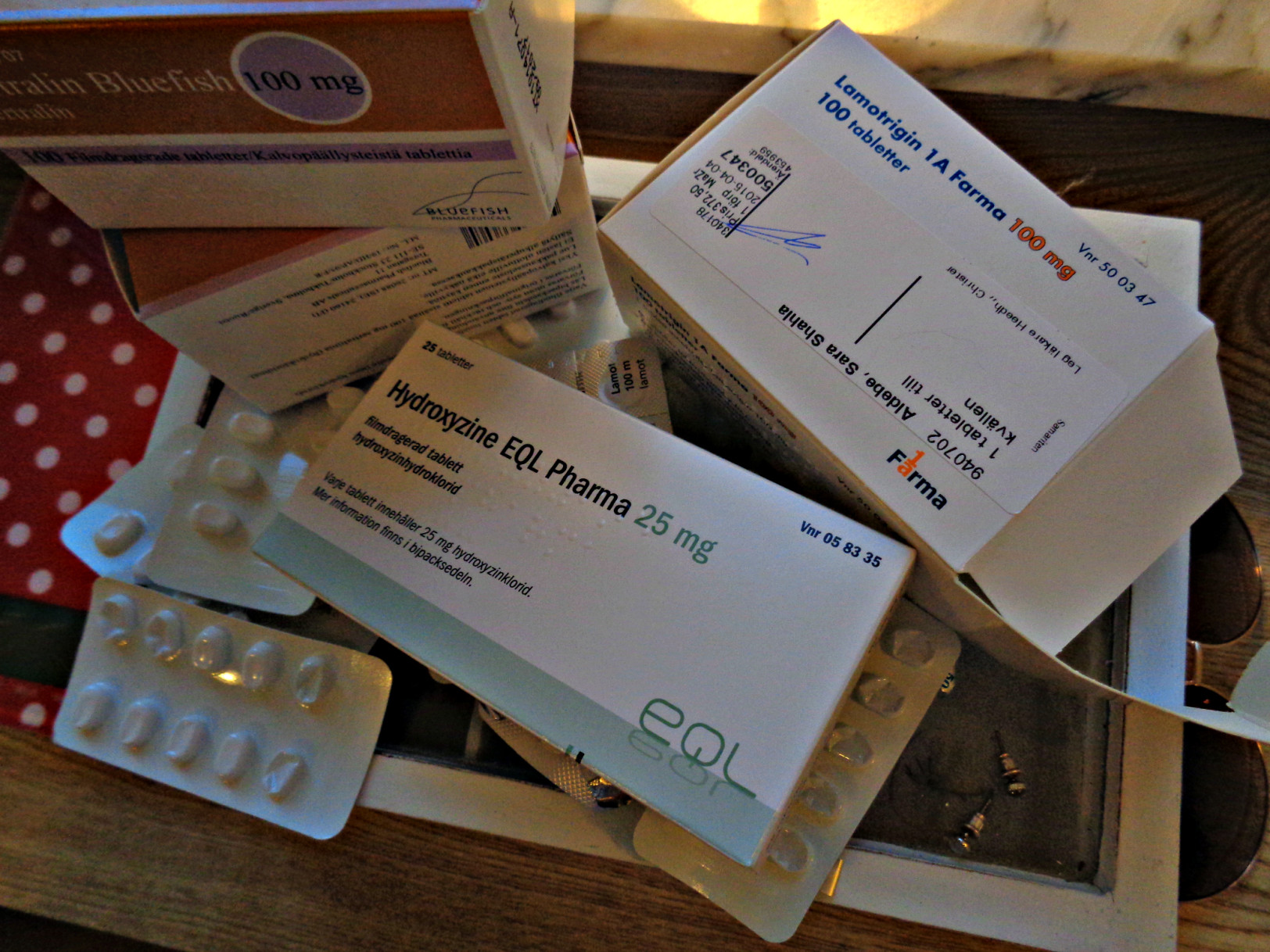 Ugh, ikväll har jag suttit och doserat upp all medicin i en senildosa (medicindosa/dosett), ni vet en sån som gamlingar använder sig utav, inför min månad i London town. Det blev ett litet projekt! Det är ändå 5 tabletter för min psykiska sjukdom + 4 värktabletter för mina leder PER DAG. Och alla piller ser likadana ut så är det nåt som läggs fel så är det nästan kört 😉 Men allt gick bra och nu är det äntligen klart så då är det ur världen. Nu är jag ready to go och behöver inte släpa med mig alla dessa kartonger och oroa mig för att tappa bort dem. Alltså, en senildosa är det bästa man kan ha hemma för en person med många tabletter att hålla reda på varje dag.