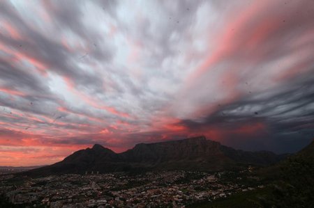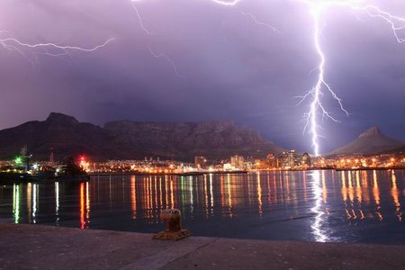 Tidigt imorse vaknade vi av en rejäl smäll.. lät som att en bomb exploderade utanför vårt hus. Det blixtrade över hela havet, i bergen bakom oss, runt huset, överallt. --- Jag gillar faktiskt åskan, tycker att den är fascinerande så det var en häftig upplevelse. Det är klart behagligare i luften idag, 10 grader kallare (29 istället för 39). Dessa bilder är tagna när ett liknande oväder drog över Kapstaden för några år sedan. Mother Nature är rejält häftig.