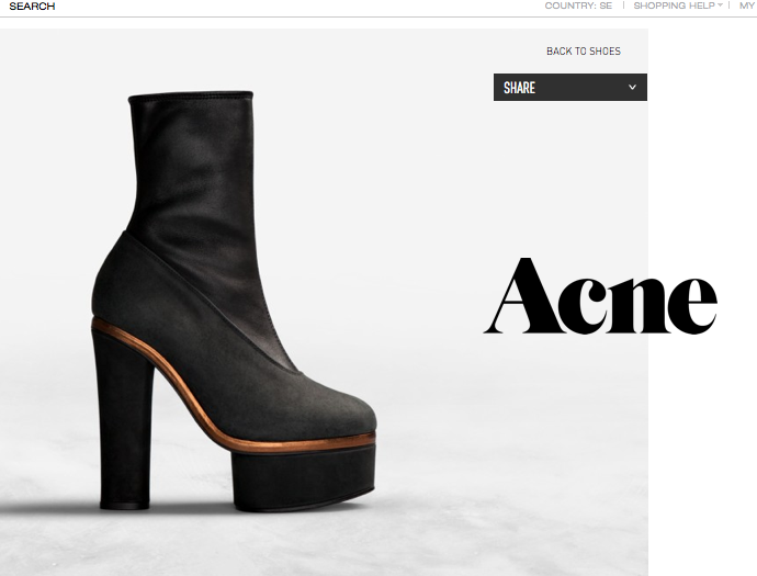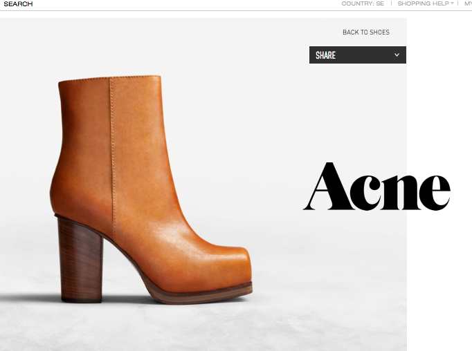 Ge mig dojjan. 21 feb 2012 av sarahgrundenw Min obsession med ACNE´s skor fortsätter. Dessa är nästa projekt… Adina Stretch 3 795:- eller Rise Chestnut same price..