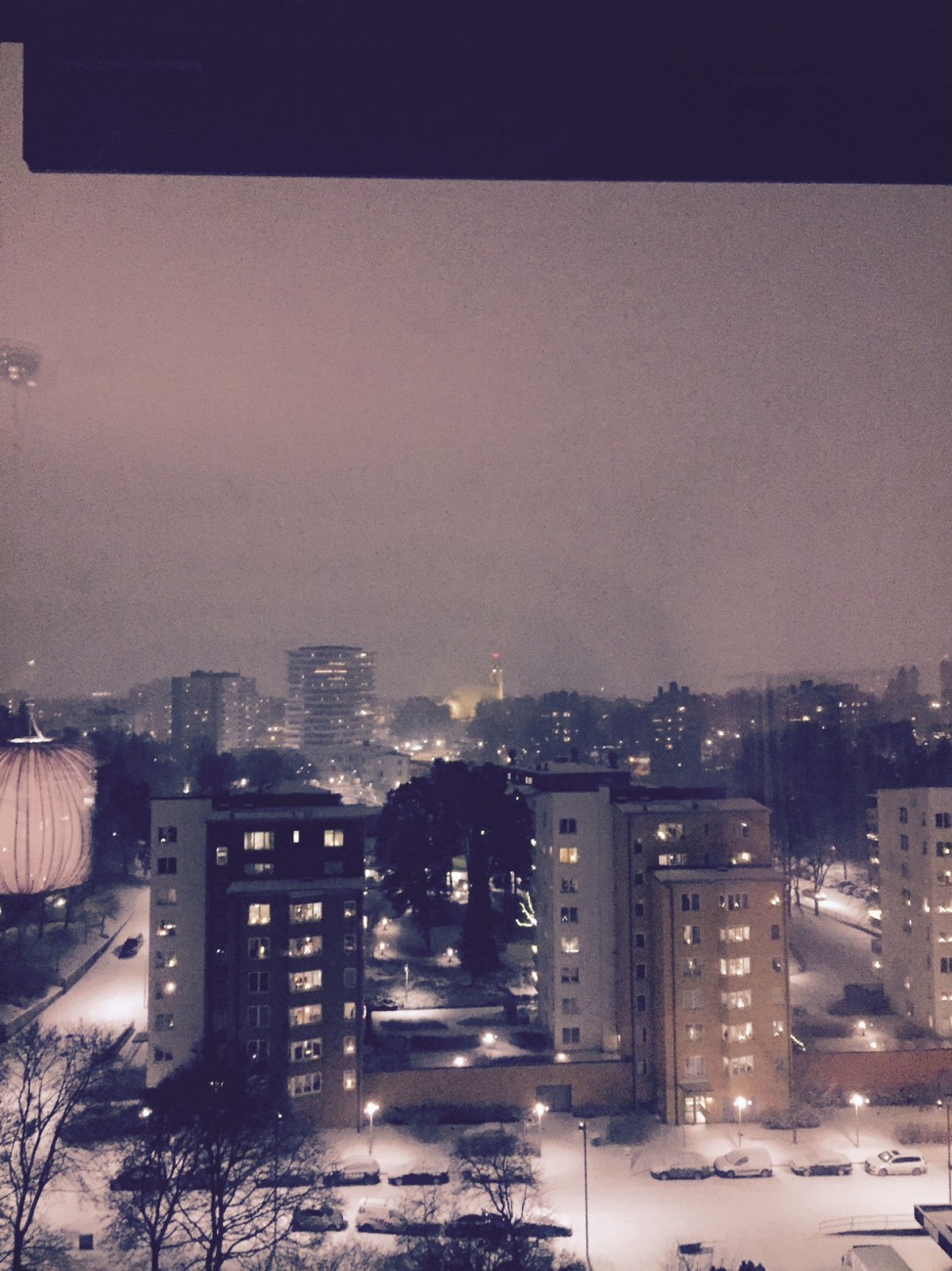Nu är jag hemma i min mysiga lägenhet igen. Å det snöar i Stockholm! I kväll ska jag göra nåt som jag verkligen avskyr, att tvätta! Tvättstugan är i en annan byggnad och det är svinkallt ute. Det är inget jag ser fram emot. Ska nog köpa mig en tvättmaskin hem så jag slipper den där tvättstugan.