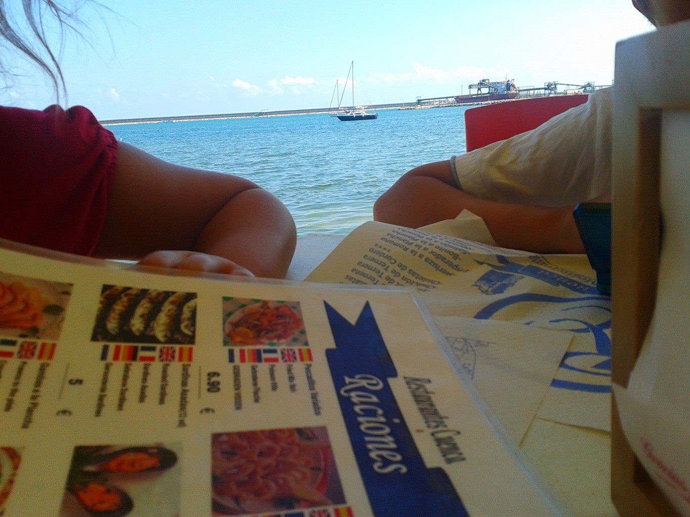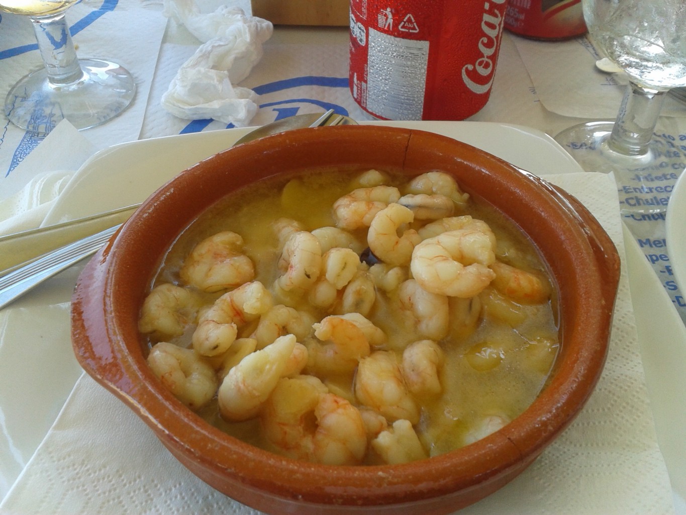 Jag tog med mig barnen in till centrum och fyllde på fransarna. Jag är riktigt nöjd och känner mig som ny igen. Efter det blev barnen vrålhungriga och ville äta så vi gick till en mysig restaurang som ligger precis vid strandkanten. Jag beställde in en ”al ajillo gambas” och barnen körde på kyckling med patatas och hamburgare med patatas.