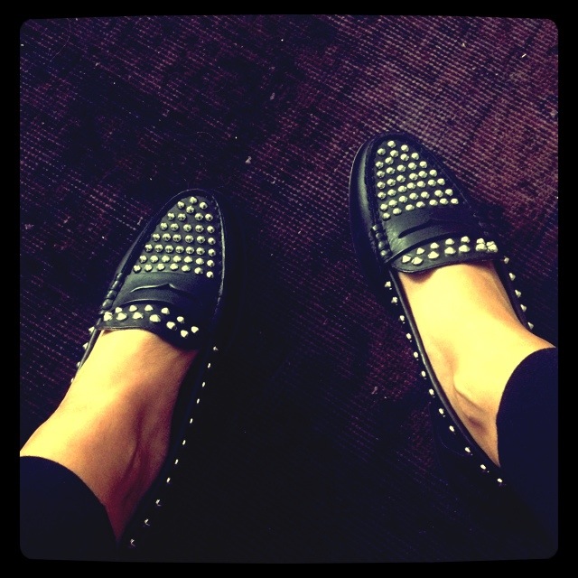 Skön oversizad t-shirt från Whyred över ett par svarta leggings och nya loafers från Zara