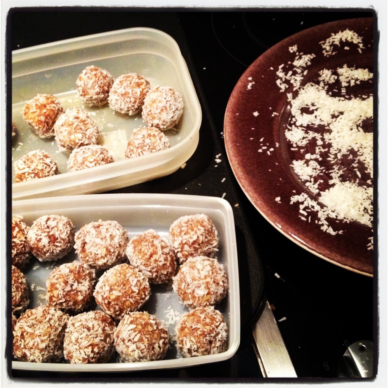 Väl hemma kände jag för att ”baka” något så jag slängde ihop en sats Raw Food bollar. Perfekt att ha som mellanmål och nyttigt kvällsgodis!
