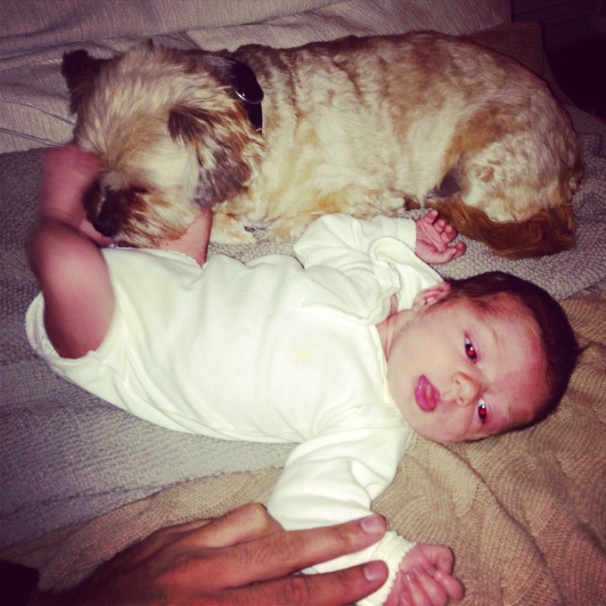3. Hej, så söta de är tillsammans:) Hur går det förresten med sovningen? Sover Maxine i sängen med er, funkar nätterna någorlunda?:) kram