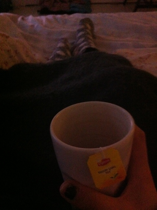 När man känner sig som man gör är det viktigt att göra det bästa av situationen! Haha typ! Då menar ja ju ofc dusha fixa det mesta orakade ben fixa det osv! Jag har gjort allt som kan tänka sig men jag ser ut som Rudolf med röda mulen! Min näsa är totalt röd alltså jul röd haha! Åh skoj! Så jag la mig i sängen med te och hofb 🙂 Later!