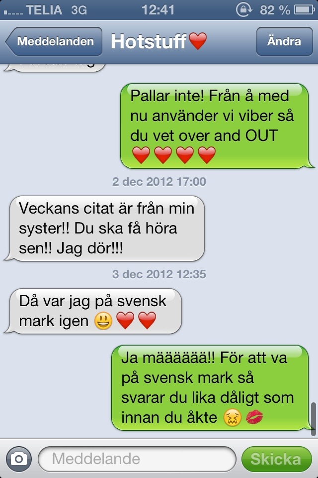 Skönt! 3 dec 2012 av Stefanie Nu har jag för ett tag sen passerat gränsen! Vilket innebär PÅ ME NÄÄÄÄÄTET SOM VANLIGT Å ANVÄND VANLIGA SMS Å RING PÅ! Haha åh Nathalie! Saknar dig också. Snart hemma 🙂 Later!