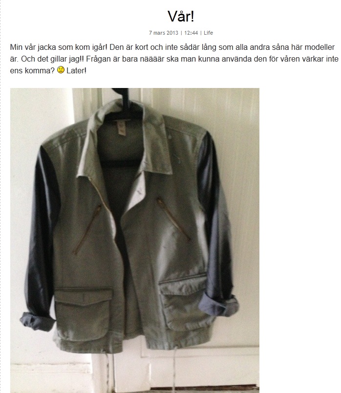 Minns du jackan jag bloggade om? Omg palla. Alla har en. Nej tack back to lager kände jag.. Nu är jag på jakt efter en ny jacka. Kul va nothing accomplished..